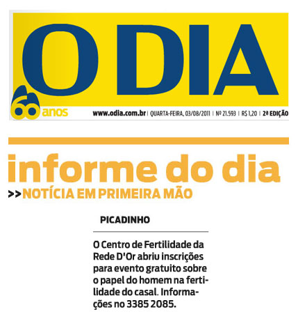 O evento em homenagem ao Dia dos Pais: “Até os heróis precisam manter a saúde em dia”, que acontece no próximo sábado, dia 6 de agosto, foi destaque nos jornais O Dia e Extra de hoje.