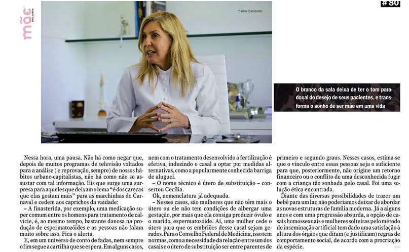 Comemorando seus 120 anos, o Jornal do Brasil lançou, no último domingo, a primeira edição da revista ‘Mãe’, contando com histórias e depoimentos de matriarcas anônimas e celebridades, especialistas e pessoas com conhecimento diferenciado sobre o tema. Entre os entrevistados, a diretora médica do Vida – Centro de Fertilidade da Rede D’Or, Maria Cecília Erthal, fala sobre um tema importante quando o assunto é maternidade: a inseminação artificial, conforme você confere na matéria abaixo. Basta clicar nas imagens para visualizá-las!