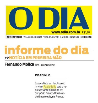 O Jornal O Dia destacou a importância da participação do Dr. Paulo Gallo no simpósio como representante carioca no evento. Confira a nota abaixo: