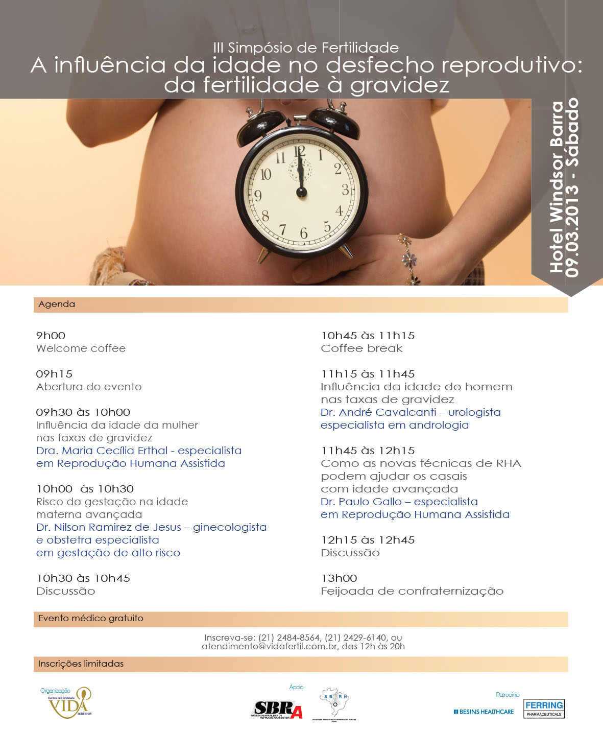 O evento, gratuito, tem o apoio da Sociedade Brasileira de Reprodução Humana (SBRH) e da Sociedade Brasileira de Reprodução Assistida (SBRA).